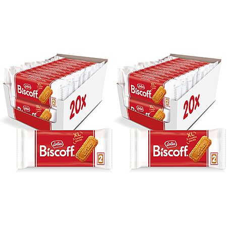 Lotus Biscoff Cookies,Caramelized Biscuit Cookie Snack,Dispenser Box (sleeves of extra large cookies) Vegan,0.9 Ounce,20 Count (Pack of 2)~$12.48 @ Amazon