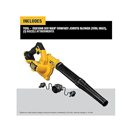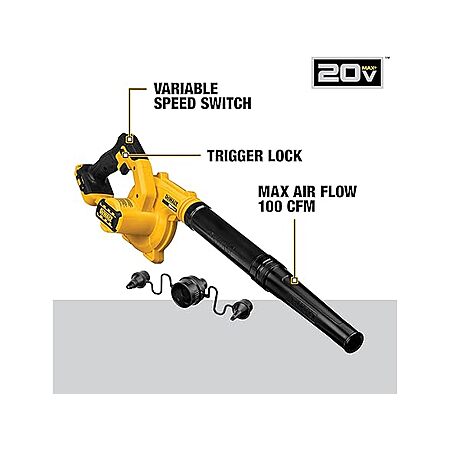 DEWALT DCE100B 20V MAX Blower, 100 CFM Airflow, Variable Speed Switch, Includes Trigger Lock, Bare Tool Only $90