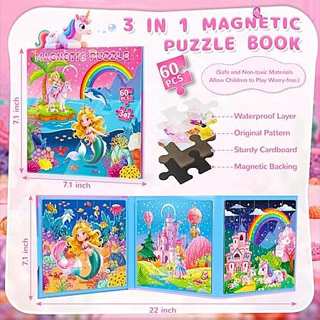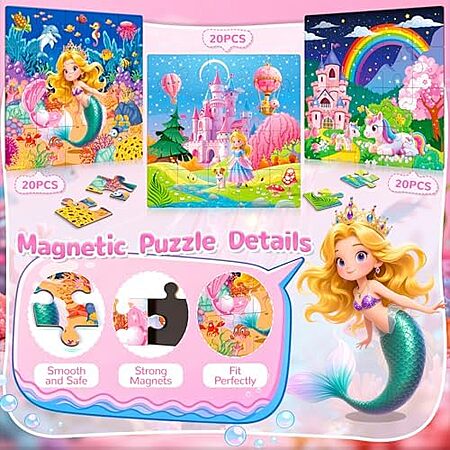 [AC] $9.49* | 2 × 60-Piece JUANCHI 3-in-1 Magnetic Kids Puzzles (Various Designs) ($4.75 each) at Amazon