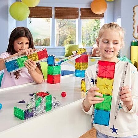 $58.50 | 90-Piece Magna-Tiles Rail Racers Deluxe Magnetic Construction Set at Amazon