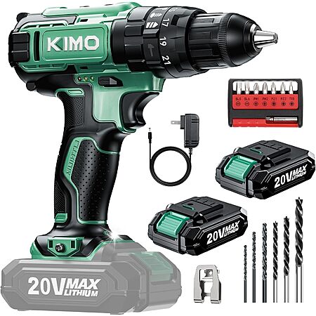 KIMO Cordless Hammer Drill Set w/ 2x 20V 2.0Ah Battery Packs