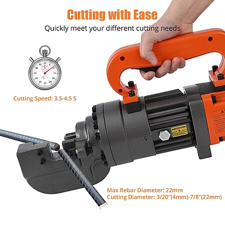 Electric Hydraulic Rebar Cutter, 1350W 110V, Cutting up to 7/8 in #7 4-22 mm Rebar, Steel, with Blades, Cutting Speed 3.5-4.0S (1350W RC-22) $229.55
