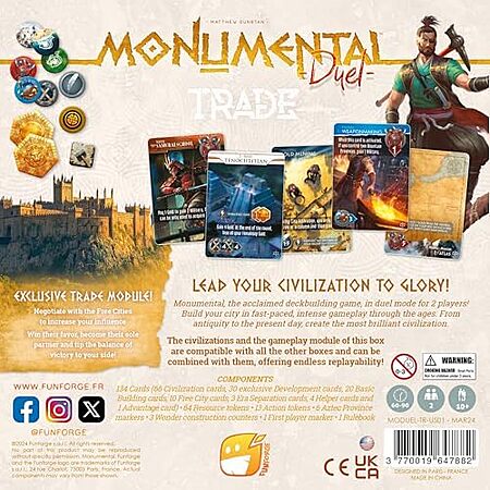 Model: Funforge: Monumental Duel - Trade - Civilization Deck-Building Board Game, Strategy Game, Combine Or Standalone, Ages 10+, 2 Players, 60-90 Min
