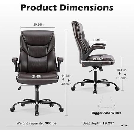 $84.99 | DUMOS PU Leather Office Chair - Ergonomic Executive Computer Desk Chairs with Adjustable Flip-up Armrest at Amazon