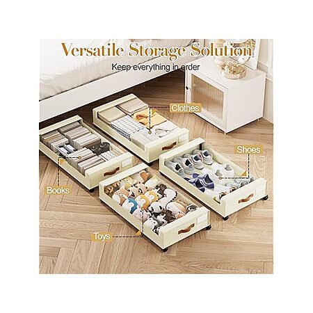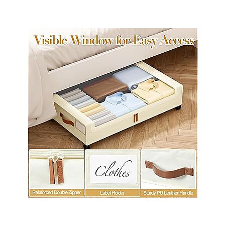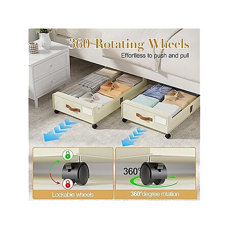 Woot! has Yecaye Under Bed Storage with Wheels, 2 Pack Under the Bed Storage Containers with Lids & Label, XXL 60L Rolling Underbed Storage Drawers for Clothes, Blankets, Shoes, Beige on sale for $22.99.