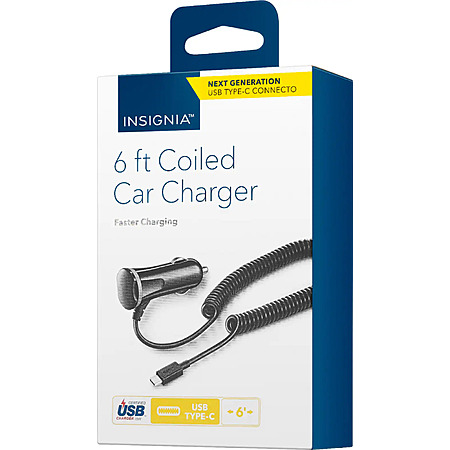 6' Insignia 15W USB-C Vehicle Coiled Charger (Black) $4.99 + Free Shipping