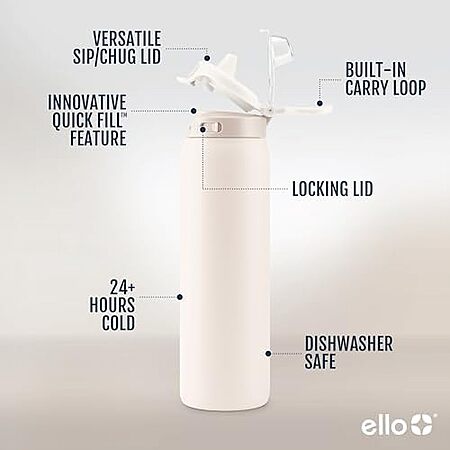 $9.99 | 22-Oz Ello Pop and Fill Stainless Steel Insulated Water Bottle (Tonal Cream) at Amazon