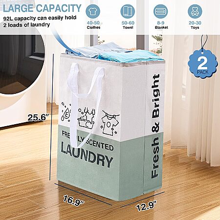 2-Pack 92L Elong Home Freestanding Collapsible Laundry Basket w/ Handles (Green, Grey) $9.99 + Free Shipping w/ Prime or on $35+