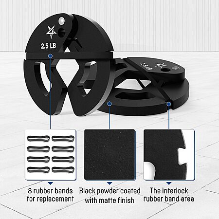 - DURABLE REPLACEMENT RUBBER BANDS INCLUDED: The dumbbell plates 2-piece set comes with 4 replacement rubber bands, while the 4-piece set includes 8 replacement rubber bands to ensure a secure fit & maintain smooth experience consistently during progressive strength training