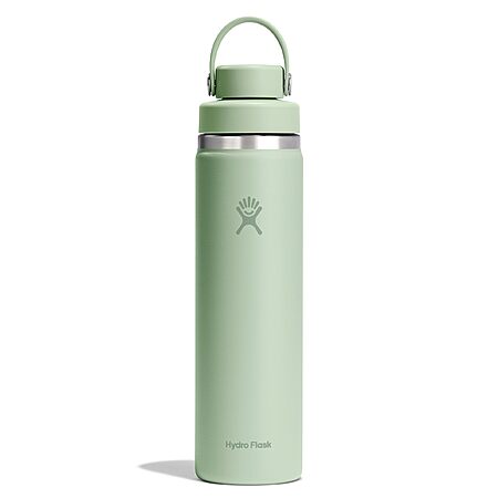 - 24 OZ ALOE GREEN BOTTLE: Refresh on the go with this Hydro Flask insulated, stainless steel 20 oz Wide Mouth bottle and leakproof Chug Cap. The narrow chug spout provides a convenient, controlled flow to quickly quench your thirst. The wide mouth cap easily fits ice cubes to keep things cool.