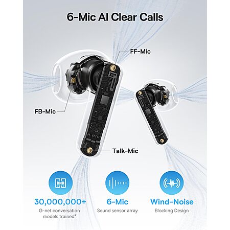 - 6-Mic Crystal-Clear Calls, Wherever You Are:6 built-in mics with AI noise isolation and wind reduction ensure your voice comes through loud and clear—even in noisy streets or windy outdoors. Stay professional and connected on every call with these advanced semi in ear earbuds