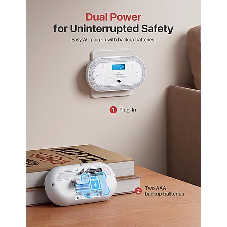 - Reliable AC Plug-In with Backup Battery: Enjoy the convenience of this CO detector that plugs in an outlet to utilize AC power, making home safety easier than ever; in the event of a power outage, the backup battery takes over, keeping you protected from this silent threat without interruption; this dual power source means 24/7 protection—and one less thing to think about