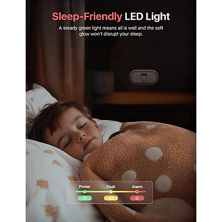 - Sleep-Friendly Light: Ideal for bedrooms, this CO detector's green status light is soft and dim so it won't disturb sleep; the steady green LED indicates a stable power supply, allowing you to quickly and easily check it is working
