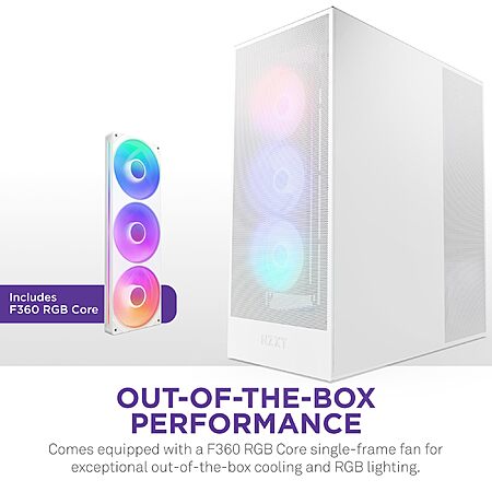 Model: NZXT H7 Flow RGB | Mid-Tower ATX Airflow Case with 360mm RGB Single Frame Fan | Supports Bottom Fans for Direct GPU Cooling | Cable Management | White