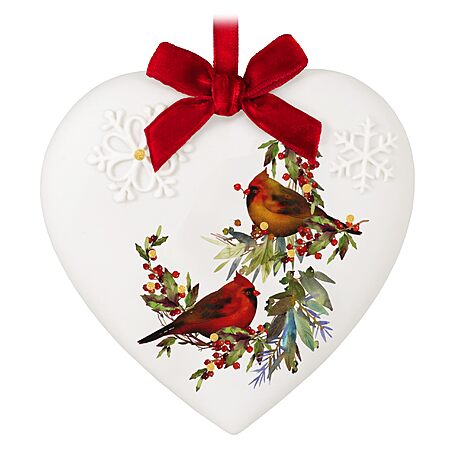 - Add a peaceful symbol of the season to your decor with this Christmas Cardinals Hallmark Keepsake Christmas ornament. A pretty red birds design decorates a porcelain white heart. Approx. Size in Inches: 3.65 x 3.65 x 1.5 Great Christmas gift idea for friends and family who love cardinals, birds and nature. Additional Details: Artist-crafted by Gregor Benedetti. Porcelain Christmas ornament features hanger attachment. Includes: One 2024 Keepsake Ornament in gift box for easy gift giving, preservation and storage.