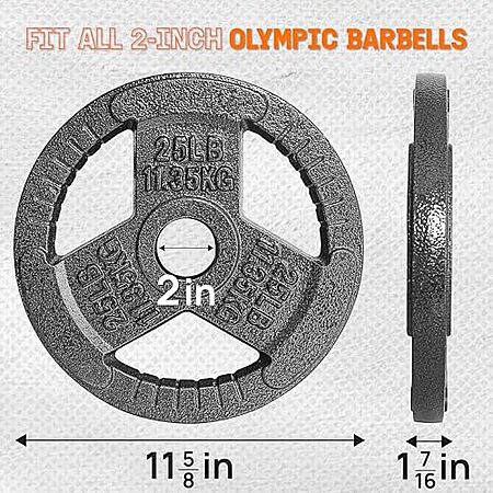 [AC] $71.42 | 4-Pack 25-Lbs Yes4All Tri-Grip Handles Cast Iron Olympic Weight Plates at Amazon