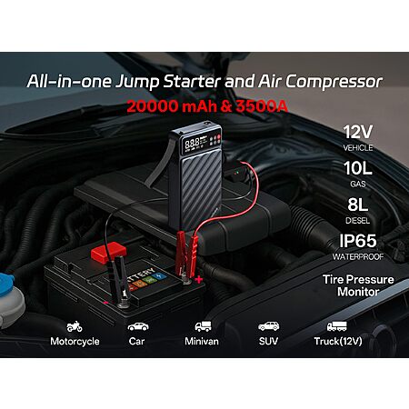 Pelsee US via Amazon [amazon.com] has Pelsee 3500A Peak Car Battery Jump Starter w/ Air Compressor & 45W Fast Charging for $109.99 - $60 with promo code V6ZSL2GW = $49.99. Shipping is free.