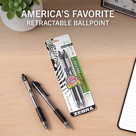 2-Count Zebra Pen Z-Grip Retractable Ballpoint Pens (Medium Point, 1.0mm, Black Ink) $1.19 + Free Shipping w/ Prime or on $35+