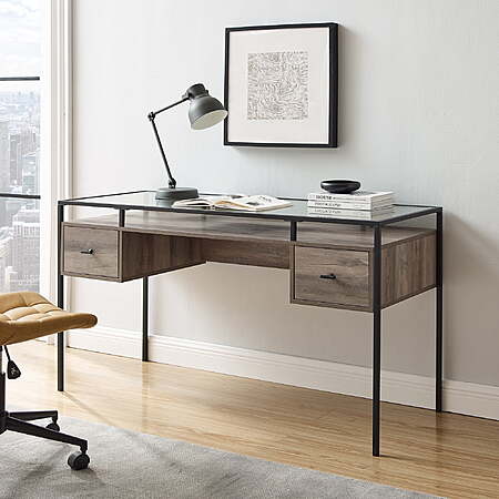Walker Edison Carlisle Grey Wash 2-Drawer Glass Top Writing Desk - $49.99