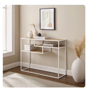Walker Edison Contemporary Wood and Metal Tiered Entryway Table, Coastal Oak/White - $19.99