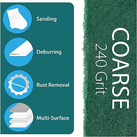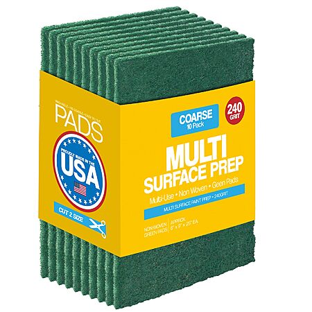 10-Pack 6" x 9" Non-Woven Paint Stripping Pads for Wood, Metal, Rust Removal 240 Grit - 10 Pack (Green) $8.93 + Free Shipping w/ Prime or on $35+