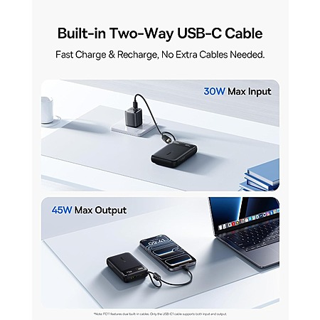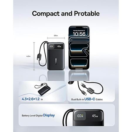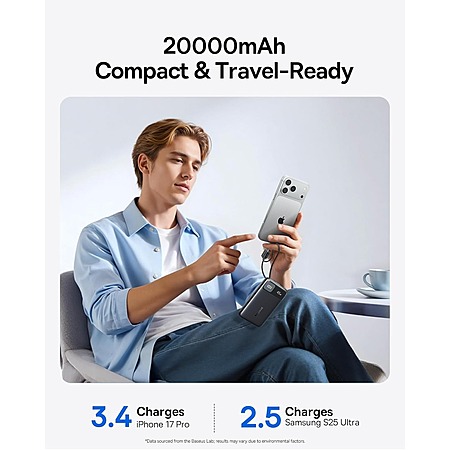 Model: Baseus 20000mAh Compact Portable Charger 45W, CCC Certified Power Bank Built-in USB-C Cables, Travel Essential PD Fast Charging Battery Pack for iPhone 17/16 Series Galaxy S25/S24 Ultra Google iPad