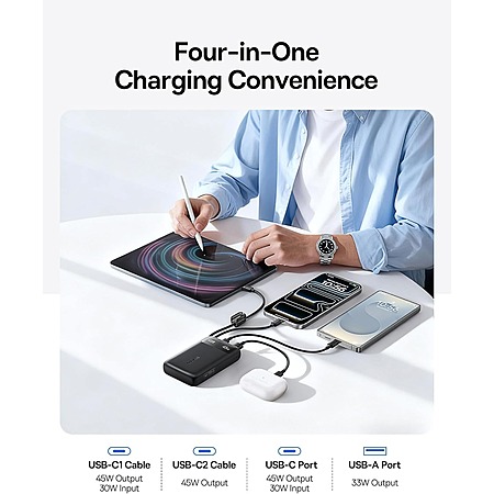 Baseus Brand Store via Amazon[amazon.com] has Baseus 20,000mAh 45W PD Fast Charging Battery Pack w/ Built-In USB-C Cables on sale for $20.99 w/ code COWO7PWE at checkout. Shipping is free