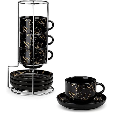 MALACASA Online Store US via Amazon [amazon.com] has for Prime Members: 4-Count MALACASA Porcelain Stackable Cups & Saucers Set with Metal Stand on sale from $12.99 when you visit 46% off promo code page to activate [amazon.com] (or apply promo code H9X3TIPN at checkout). Shipping is free.