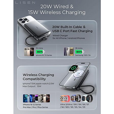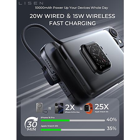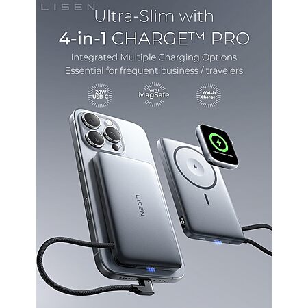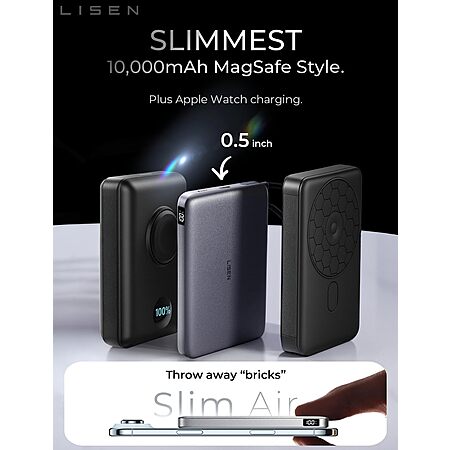 LISEN Ultra Slim MagSafe Power Bank with Apple Watch Charging 10000mAh $23 & More + Free Shipping