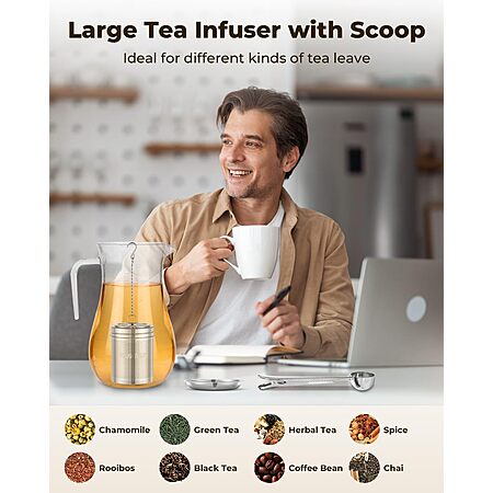 House Again Large Tea Infuser: 18/8 Stainless Steel Tea Strainer with Extended Chain Hook $7.29