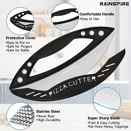 12" Rainspire Pizza Rocker Blade Stainless Steel Pizza Cutter w/ Cover (Black) $2.98 + Free Shipping w/ Prime or on $35+