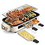 Pukomc 2-in-1 Electric Indoor Smokeless Grill w/ Grill Net & Non-Stick Cooking Removable Plate (Beige)on sale for