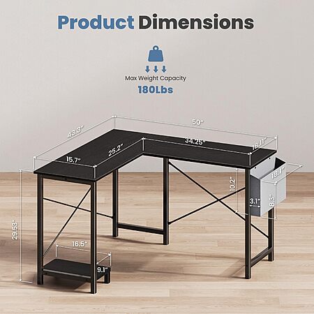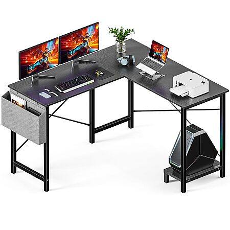 DUMOS L Shaped Desk Computer Gaming Corner Table 50 Inch Home Office Writing Student Work PC Workstation with Side Storage Bag CPU Stand for Bedroom Small Spaces $47.47
