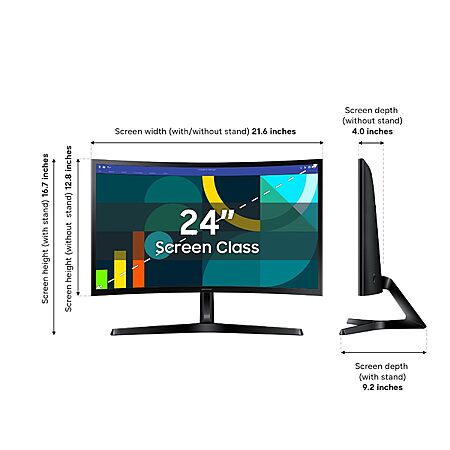 Model: SAMSUNG 24" Essential S3 (S36GD) Series FHD 1800R Curved Computer Monitor, 100Hz, Game Mode, Advanced Eye Comfort, HDMI and D-sub Ports, LS24D366GANXZA, 2024
