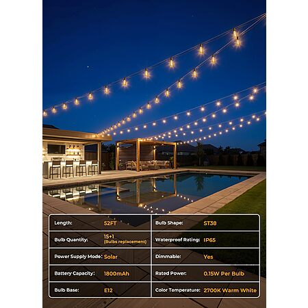 Brightown USA via Amazon has 52' Brightown Outdoor Waterproof Solar String Lights on sale for $14.38 when you apply the coupon.