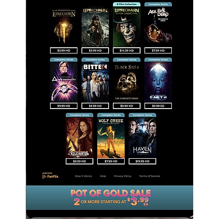 Extra 10 % Off Fanflix Pot of Gold Sale 2 or more starting @ $3.99 each Use code GOLDEN10 Ends 03/24 1159 PM PST