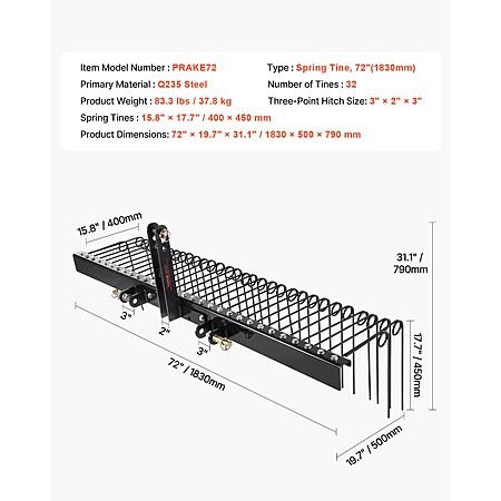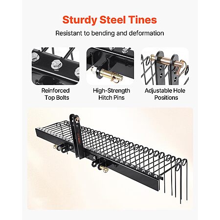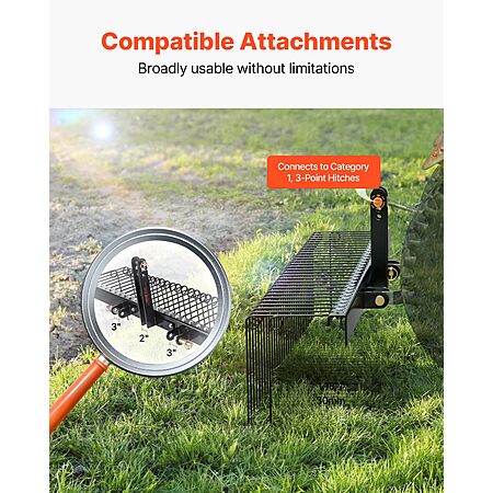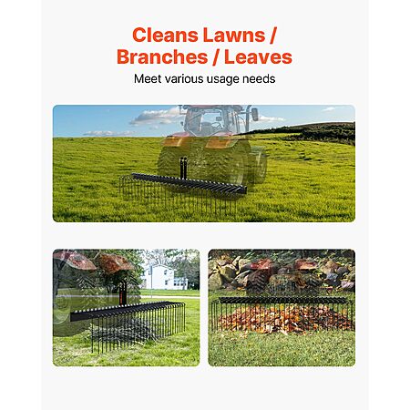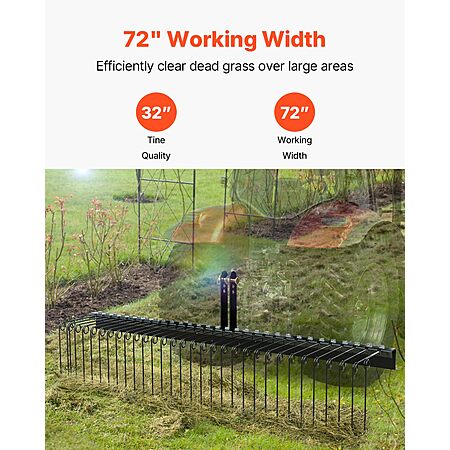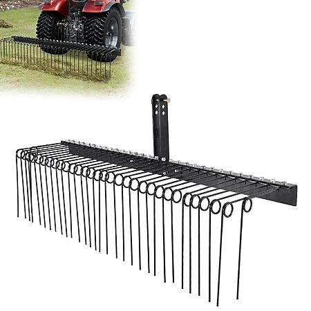 VEVOR Tow Behind Landscape Rake, 72" Lawn Dethatcher Rake with 32 Steel Tines, Attaches to Category 1, 3 Point Hitch for Tractor, Heavy Duty Tow Dethatcher $167.99