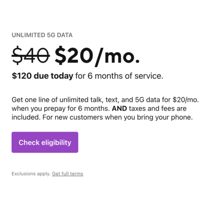 Pay $120 today for six months of service (equivalent to $20/month).