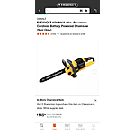 FLEXVOLT 60V MAX 16in. Brushless Cordless Battery Powered Chainsaw (Tool Only) $299