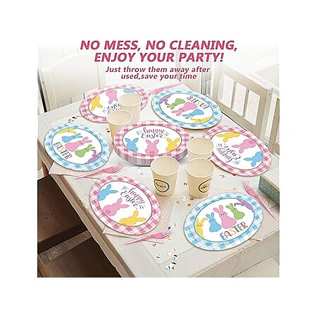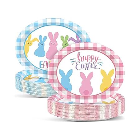 50 PC 11" Easter Bunny Paper Plates Blue and Pink Combo $13 WOOT