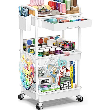 3-Tier Sunally Wide Rolling Storage Cart w/ Removable Drawer (Black, White) $13.80 + Free Shipping w/ Prime or on $35+