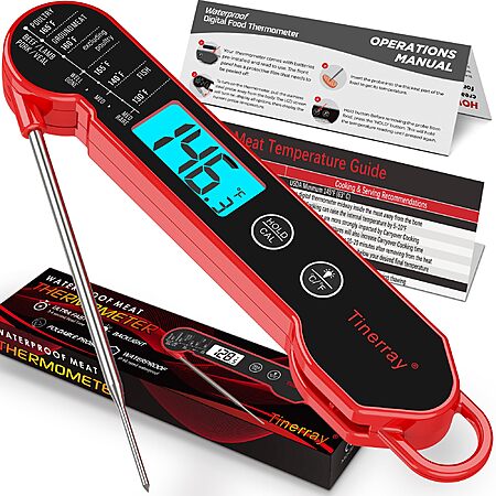 Tinerray Digital Instant Read Meat Thermometer w/ Backlight and Calibration (Red Only) $1.99 + Free Shipping w/ Prime or on $35+