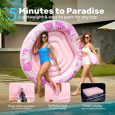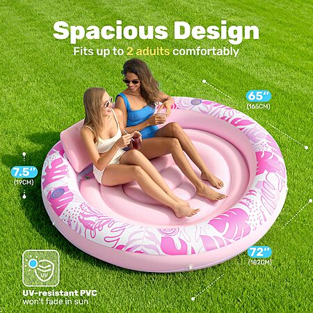 Inflatable Tanning Pool Lounger Float, 72" x 56" Pool Floats Adult with Pillow, 4 in 1 Round Suntan Tub Raft $25 ac FS PRIME
