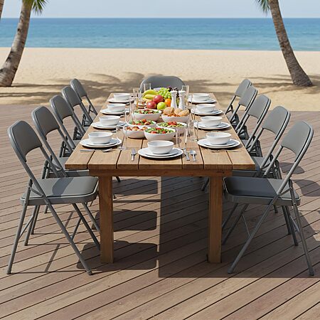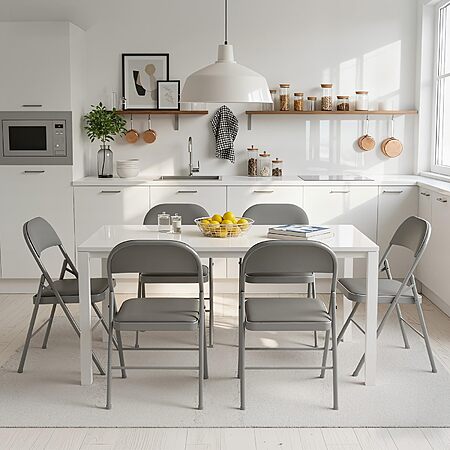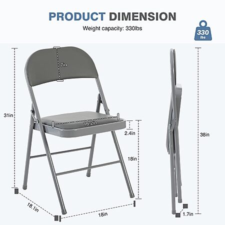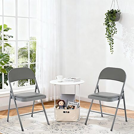 Amazon.com has DUMOS 2 Pack Folding Chairs with Padded Cushion and Back - PU Leather Stackable Portable Dining Chairs Set, for Home and Office, Conference, Wedding, Party, Patio, Garden, for Indoor Outdoor, Grey on sale for $35.94. Shipping is free.