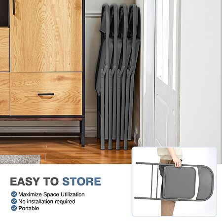 - 【Foldable & Space-Saving Stackable】Designed for ultimate convenience, it can be quickly folded and neatly stacked to save space and be easy to store. The lightweight and sturdy frame is effortless to carry when moving indoors or outdoors. When not in use, it can be neatly stacked in the corner of a meeting room, garage or trunk. These chairs are pre-assembled and can be used immediately.