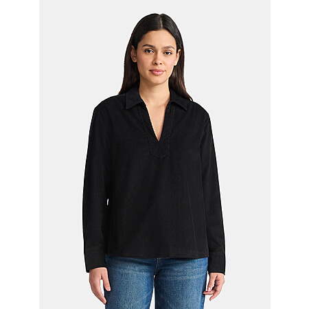 4.49$ | Time and Tru Women's Cotton Corduroy Popover Shirt with Long Sleeves, Sizes XS-XXL