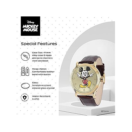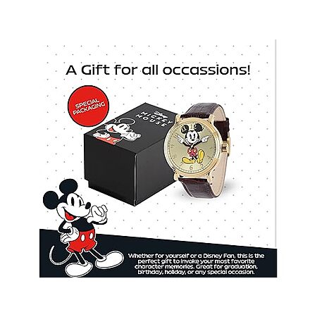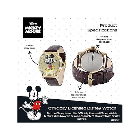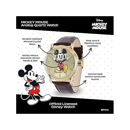 Disney Mickey Mouse Adult Vintage Analog Quartz Watch w/ Articulating Hands (Gold, Dark Brown) $14.99 + Free Shipping w/ Prime at Woot!