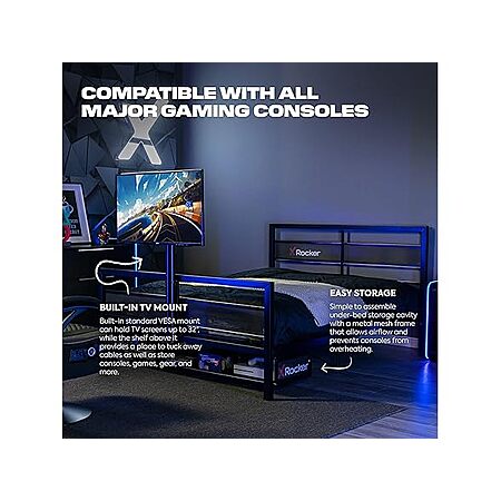 Woot! has X Rocker Basecamp Full Size Gaming Bed, Rotating TV Mount with Vented Console Storage, Metal Mesh Frame with Slats, Amazon Exclusive, Black on sale for $99.99.