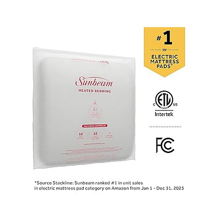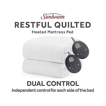 Woot! has Sunbeam Electric Dual-Control Heated Mattress Pad, Restful Quilted Extra-Cozy Fabric, 12 Heat Settings, 12-Hour Auto Shut-Off, Deep Pocket Fit, Machine Washable, King 80" x 76" on sale for $38.99.