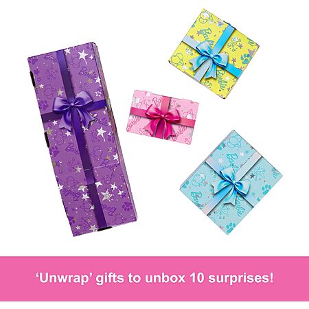 - With 10 surprises waiting to be 'unwrapped', the Barbie Party Unboxed Pet Birthday Series turns unboxing into a party with a stack of 4 presents hiding a doll, pet and so much more!